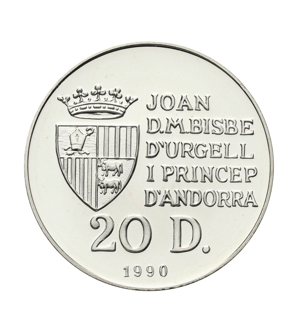 Andorra. 20 Diners 1990, Barcelona Summer Olympic Games, KM 59, Silver 35 mm, weight 16 g. .925, Condition Proof