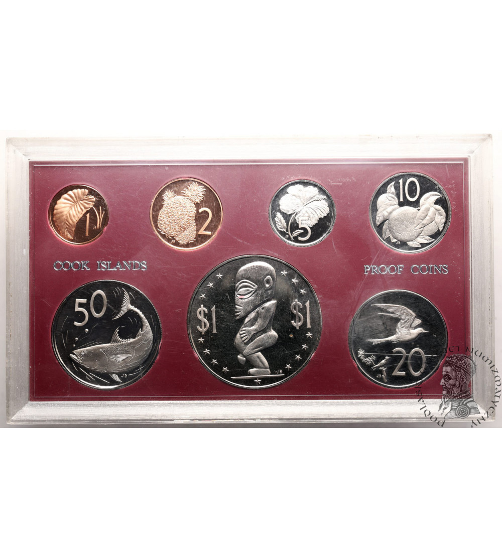 Cook Islands, Elizabeth II (1952-2022). 1972 Annual Proof set, 7 coins, KM PS1 1972 (7), KM 1-5, 6.1, 7, Condition Proof, original hard plastic box, scratched