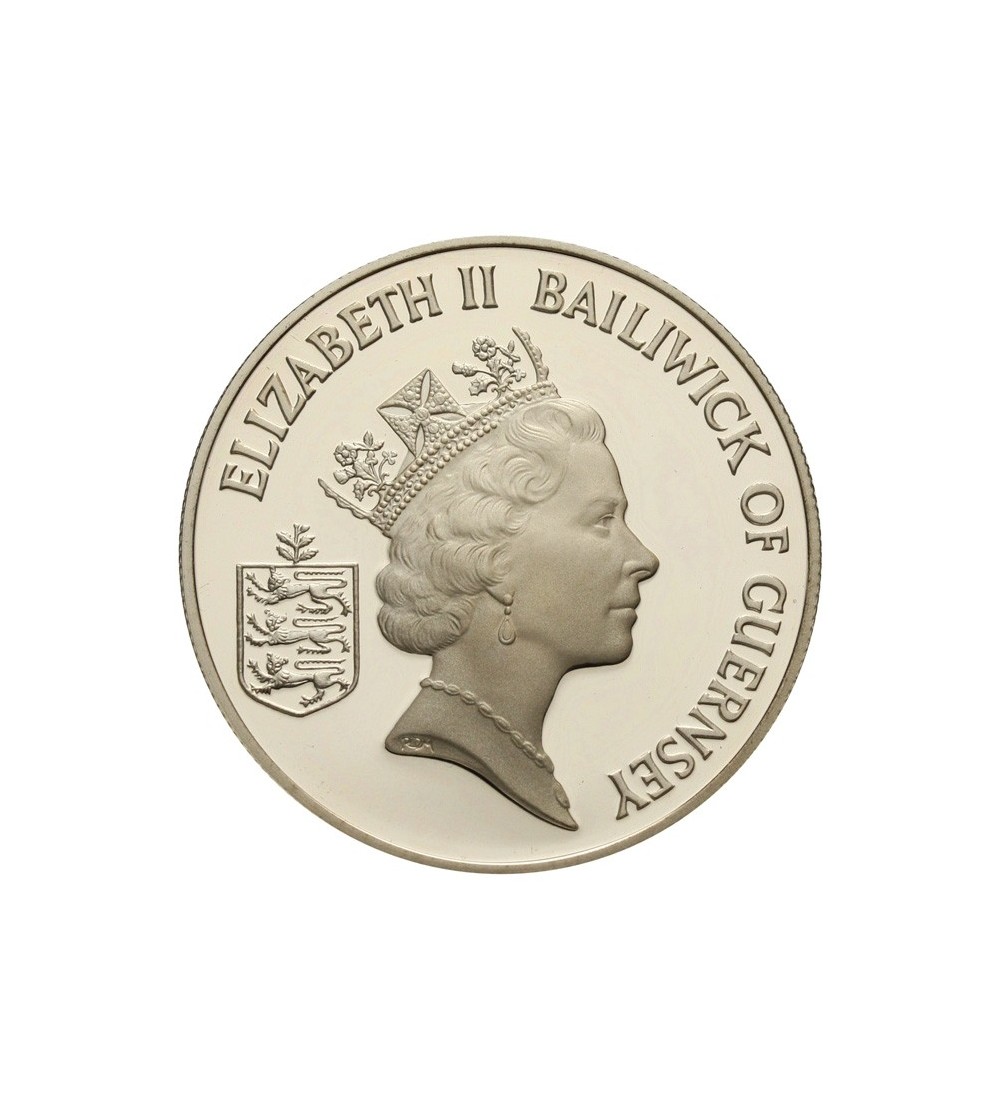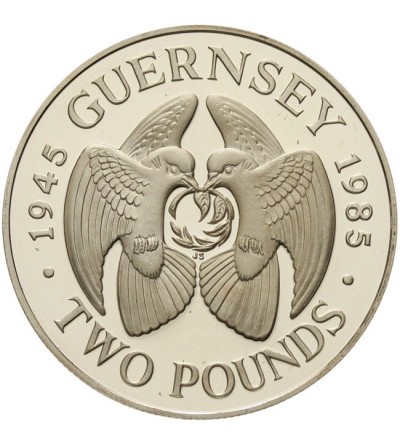 Guernsey, Elizabeth II (1952–2022). 2 pounds 1985, 40th anniversary of liberation from German occupation, KM 47a, Silver 38,61 mm, weight 28,28 g. .925, mintage 2500 pcs, Condition Proof
