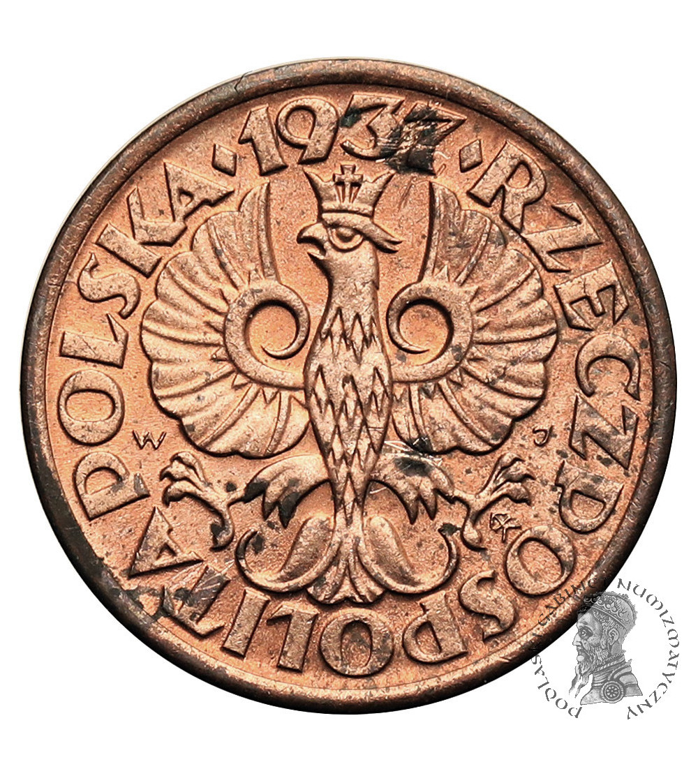 Poland 2 Zlote 1933, Warsaw mint, woman's head, Parchimowicz 110.b, KM Y# 20, Silver 22 mm, weight 4,36 g. .750, Condition NGC MS 64, mint error - rotated 17 degrees