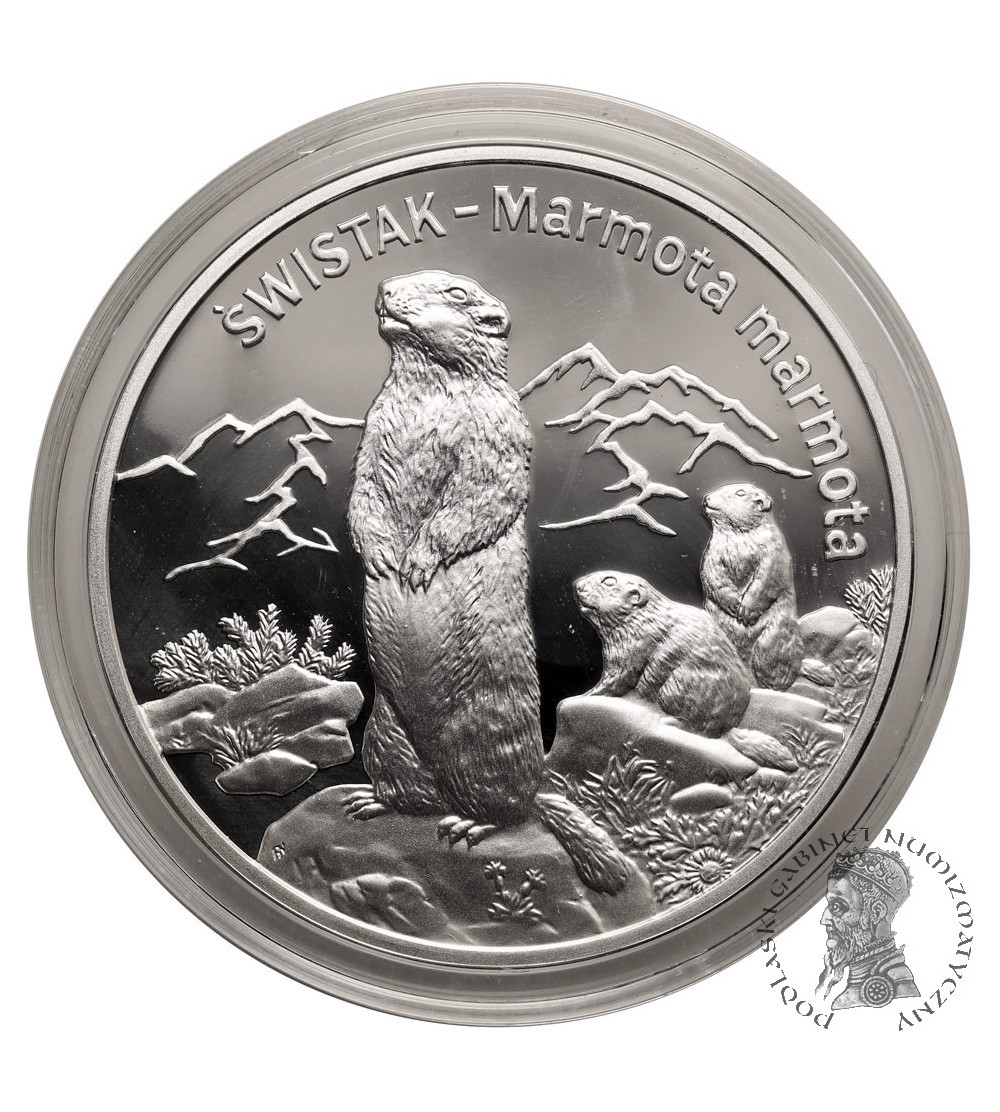 Polska. 20 złotych 2006, Świstak (Marmota marmota), Parchimowicz 1017, Fischer K(20) 041, KM Y# 497, Srebro 38,61 mm, waga 28,28 g. .925, stempel lustrzany, stan zachowania L, menniczy egzemplarz