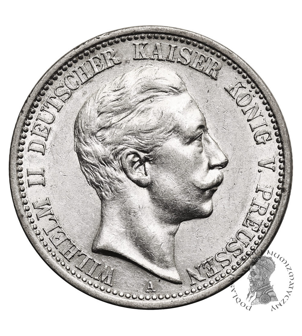 Niemcy, Prusy. 3 marki 1914 A, Wilhelm II, Jaeger 113, KM 538, srebro 33 mm, waga 16,66 g. .900, stan zachowania 2/1-, piękny połysk, drobne ryski na awersie