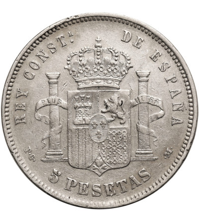 Hiszpania, Alfonso XIII (1886-1931). 5 Pesetas 1891, KM 689, srebro 37 mm, waga 24,8 g. .900, stan zachowania 3, drobne uszkodzenia obrzeża, szara patyna