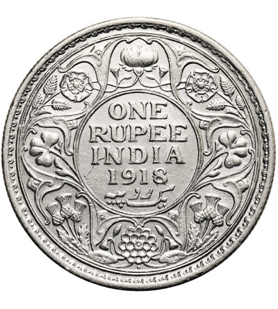 Indie Brytyjskie, Jerzy V (1910-1936). 1 rupia 1918 (b), Mumbaj / Bombaj, KM 524, srebro 31 mm, waga 11,7 g. .917, stan zachowania 2, lekko czyszczona