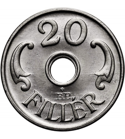 Węgry. 20 Filler 1944 BP, KM 520, stal 22 mm, waga 3,56 g., stempel lustrzany Proof, stan zachowania L, Proof Restrike - oficjalne nowe bicie