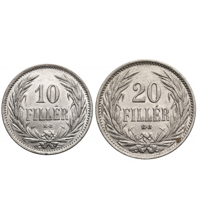 Węgry (Święte Cesarstwo Rzymskie), Franciszek Józef I (1848-1916). Zestaw 10 filler 1909 KB, 20 filler 1914 KB
